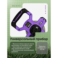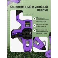 Усиленное полотно с контрастирующей разметкой не погнется при работе на участках со сложным рельефом. При измерениях рулетка не выпадет из рук: крепкое удержание обеспечивает эргономичная рукоятка с нескользящим покрытием. По окончании обмера ленту легко замотать обратно, используя боковую ручку с блокиратором холостого хода.