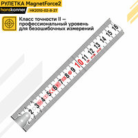 Для наилучшего комфорта работ зацеп имеет мощный двойной магнит, с силой прижатия способной выдержать 2 кг, благодаря которому обеспечивается его надежная фиксация к металлосодержащим поверхностям, что помогает выполнить замеры в одиночку, либо соединить вместе две рулетки для измерения увеличенной до 16 метров длинны с одной стоянки без перехода.