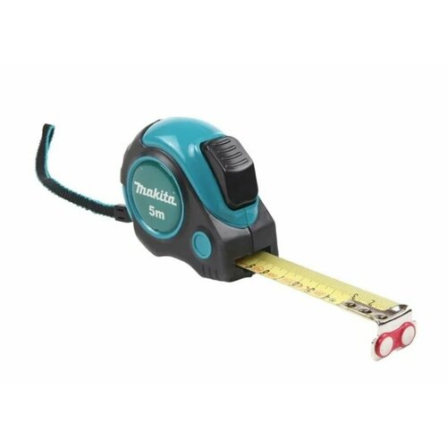 даропрочная рулетка с механизмом автосмотки. Длина рулетки составляет 5 метров. Корпус рулетки имеет специальные вставки, которые защищают механизм автосмотки и сам корпус при падении.