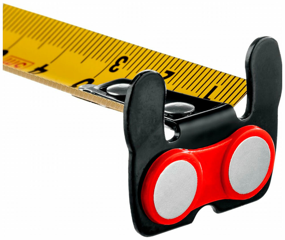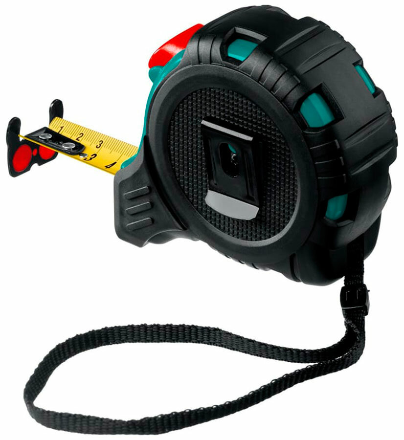 Рельефный корпус не скользит в руке, а эргономичная форма рулетки удобна для работы.