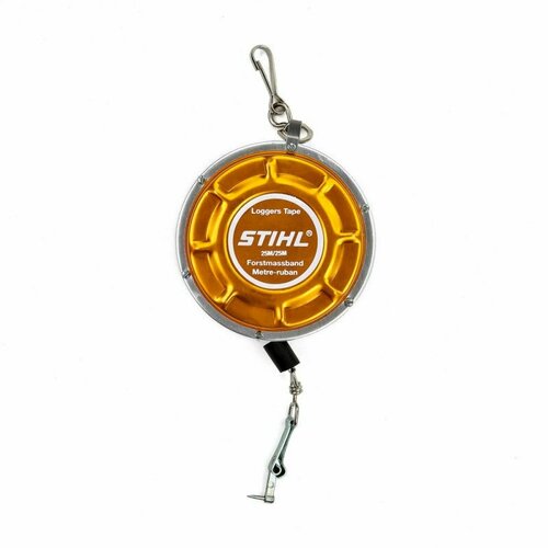 Рулетка STIHL выполнена в металлическом корпусе, который обеспечивает прочность и долговечность инструмента. Длина мерного полотна составляет 25 метров, что позволяет проводить замеры на значительных расстояниях, например, на строительных площадках или в лесу.