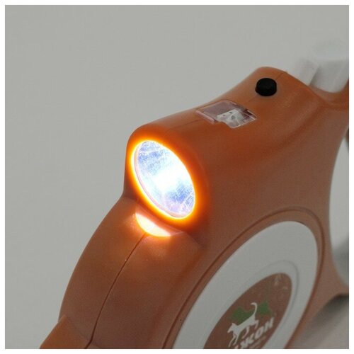 Рулетка с фонариком, прорезиненная ручка, 5 м, до 35 кг, оранжевая — оригинальная вещица для вашего питомца. Ежедневный уход за вашим любимцем и дрессировка превратятся в удовольствие с нашими товарами. Порадуйте себя или своих знакомых забавной новинкой или подарите её человеку, который давно планировал завести четвероногого друга. Максимальный вес животного, кг: 35. Длина поводка, м: 5. Вид поводка: Лента. Дополнительные функции: Фонарик, Прорезиненная ручка.