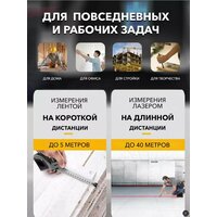 Купить Рулетка Шкала измерений с лазерным дальномером, до 40м, пластик с доставкой по всей России.
