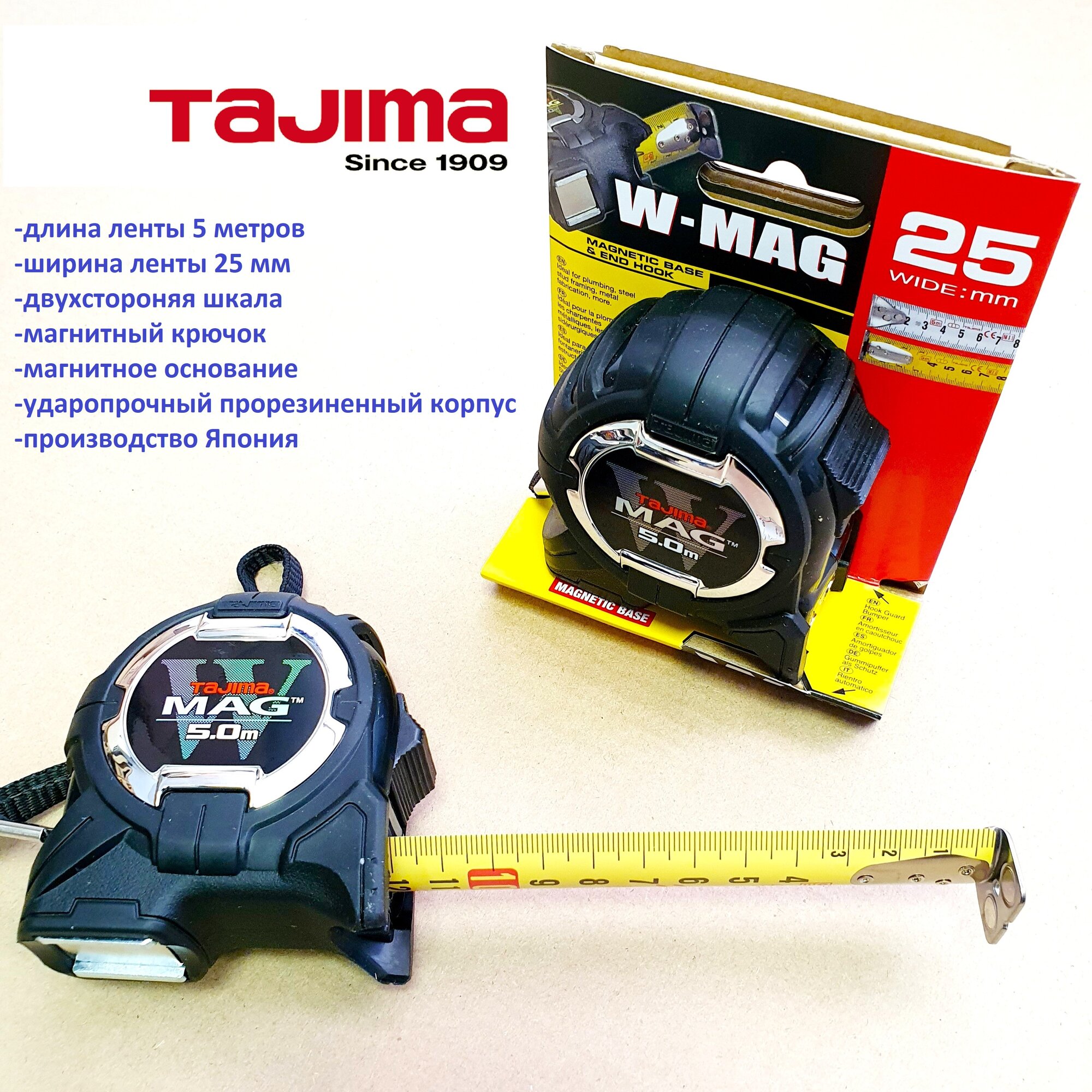 Рулетка TAJIMA W-MAG (WM550MRD) 5м/25мм c обрезиненным магнитным корпусом и зацепом, 2-х сторонняя шкала: сравнение цен, характеристики, фото, актуальное наличие и цены.