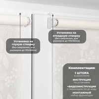 | Подробная комплектация | Рулонная штора на стальном оцинкованном валу 17 мм - 1 шт, утяжелитель пластиковый вшитый - 1шт, боковые кронштейны - 2шт, регулировочные кронштейны на откидную створку - 2 шт, площадки на двустороннем скотче для глухой и откидной створки окна - 2 шт, механизм управления на цепи 1 шт, ограничитель управления цепи - 1 шт, этикетка и инструкция - 1 шт. |