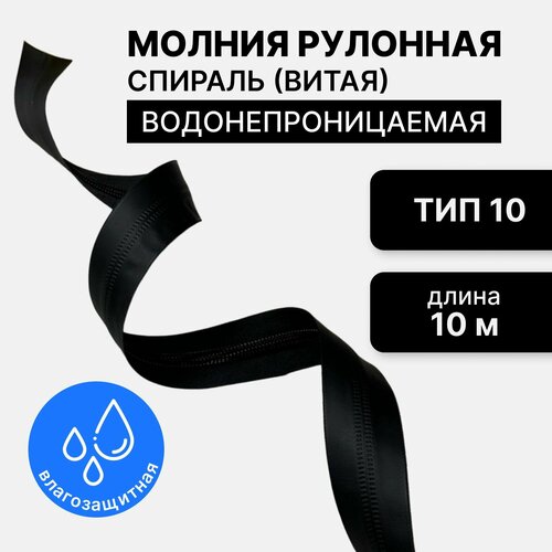 Рулонная витая молния тип 10, водонепроницаемая (waterproof)