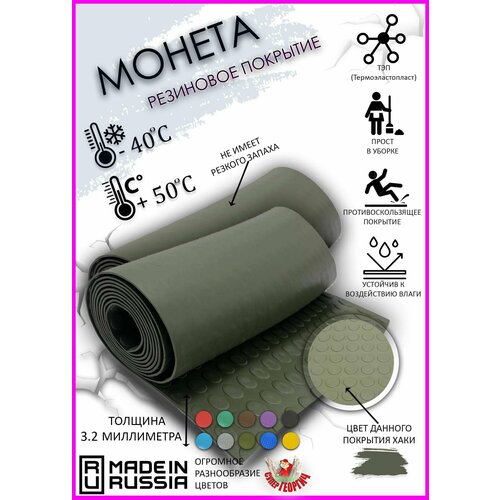 Рулонное покрытие Хаки Монета размер 0,5х5: сравнение цен, характеристики, фото, актуальное наличие и цены.