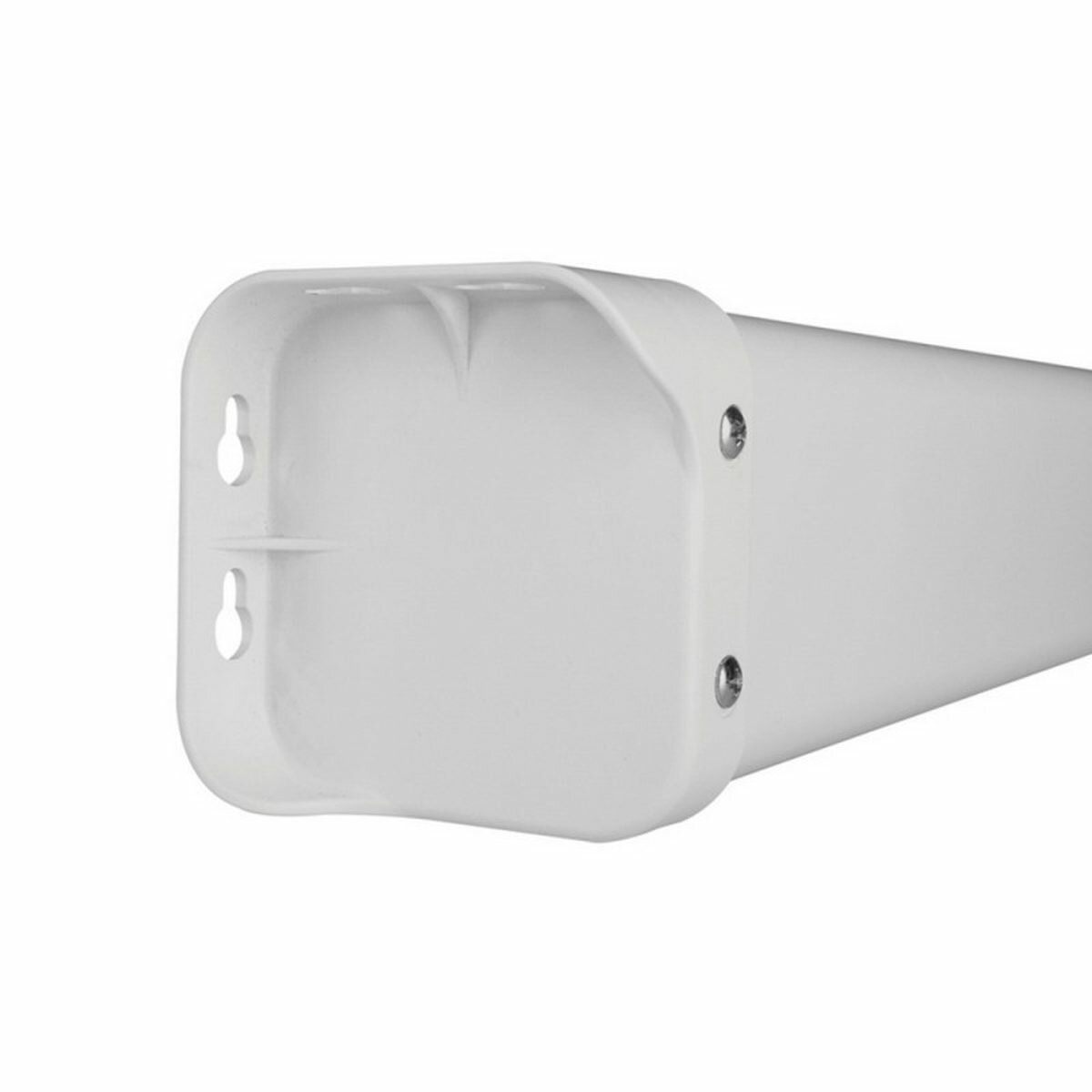 Корпус экрана выполнен из стали с белым полимерным покрытием. Торцевые заглушки корпуса изготовлены из ударопрочного белого пластика.