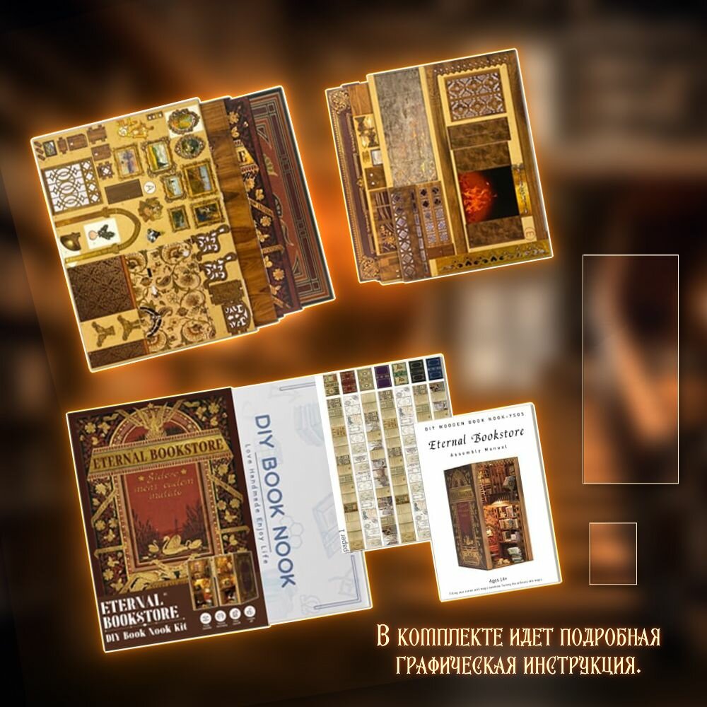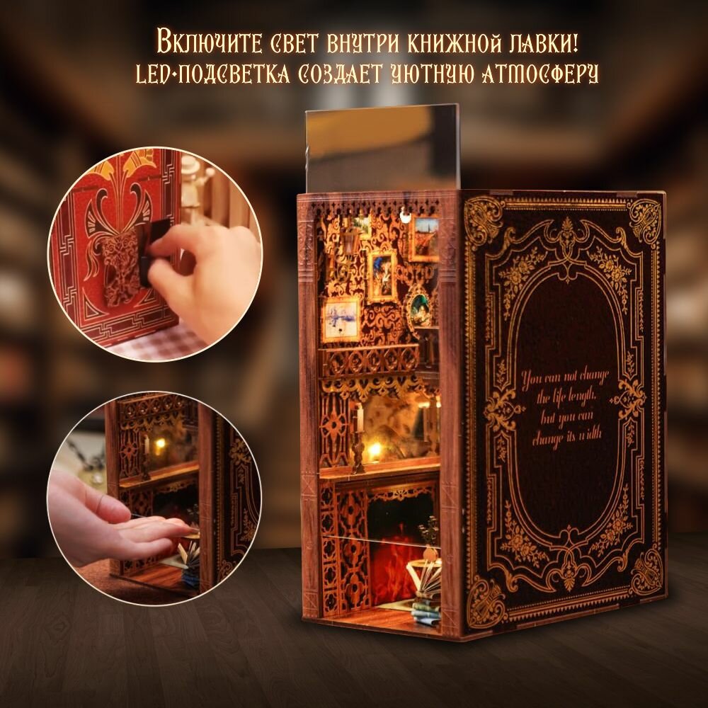 Свет и атмосфера: Включите свет внутри книжной лавки! LED-подсветка создает уютную атмосферу, словно в этой комнате хранятся древние секреты.