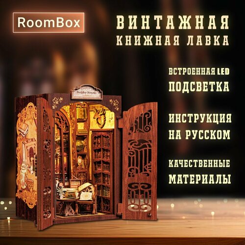 Румбокс с подсветкой в виде винтажной книжной лавки — это уникальный набор для сборки, который подарит вам удовольствие от творчества и станет замечательным элементом декора. Этот миниатюрный проект позволит вам отвлечься от повседневных забот и погрузиться в мир рукоделия. С помощью данного набора вы сможете создать стильную и атмосферную книжную лавку, наполненную деталями, которые добавят уют и шарм вашему пространству.