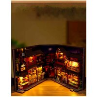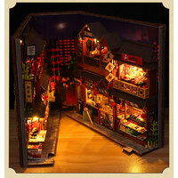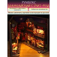 Румбокс "Шанхайский стрит-фуд" (миниатюрный домик для самостоятельной сборки). В комплект входит светодиодная подсветка, инструмент, дополнительный клей, глянцевая инструкция на китайском языке (инструкция на русском языке доступна в электронном виде на google disk), у вас будет ссылка. Данный румбокс после сборки может быть представлен в открытом виде, как открытая книга, так и в закрытом виде с пылезащитным чехлом. Оба варианта представления оригинальны и интересны. Сборка осуществляется в основном по картинкам - очень доступно и понятно. Данная модель более сложная чем аналогичные - это стрит-фуд и вам придётся много готовить. В комплект входят установленные батарейки LR1130(таблетки).