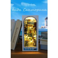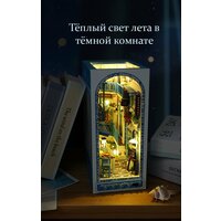 Румбокс - домик для самостоятельной сборки. Уникальность данного румбокса в наличии зеркала в конце улицы, которое увеличивает объём и расширяет внутреннее пространство. В комплект входит светодиодная подсветка, дополнительный клей, глянцевая инструкция на английском языке (инструкция на русском языке доступна в электронном виде на google disk), у вас будет ссылка. Данный румбокс после сборки может быть представлен как обычный собранный домик, так и как разделитель для книг на книжной полке. Оба варианта представления оригинальны и интересны. Сборка осуществляется в основном по картинкам - очень доступно и понятно. В комплект входят установленные батарейки LR44(таблетки).