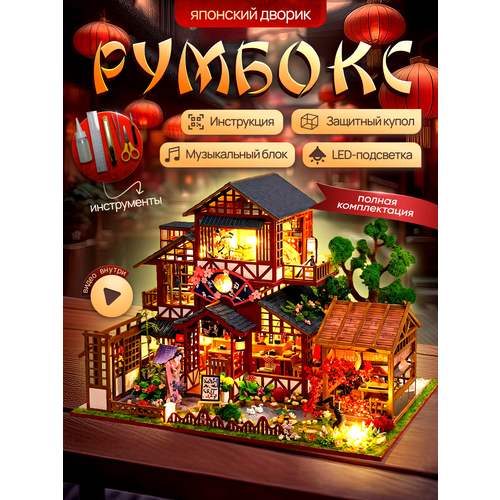 Купить Румбокс «Японский дворик», сборная модель, конструктор с куполом, музыкой, подсветкой, инструментами и батарейками с доставкой по всей России.