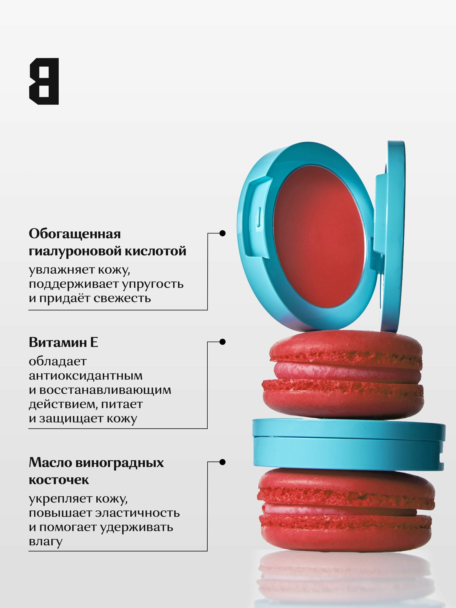 Формула румян, обогащенная гиалуроновой кислотой, витамином Е и маслом из семян арбуза.