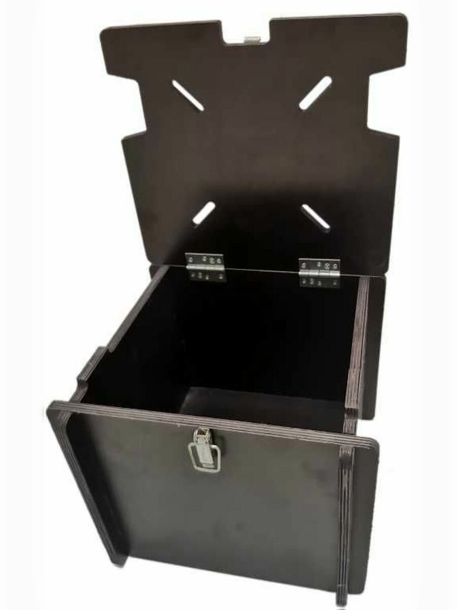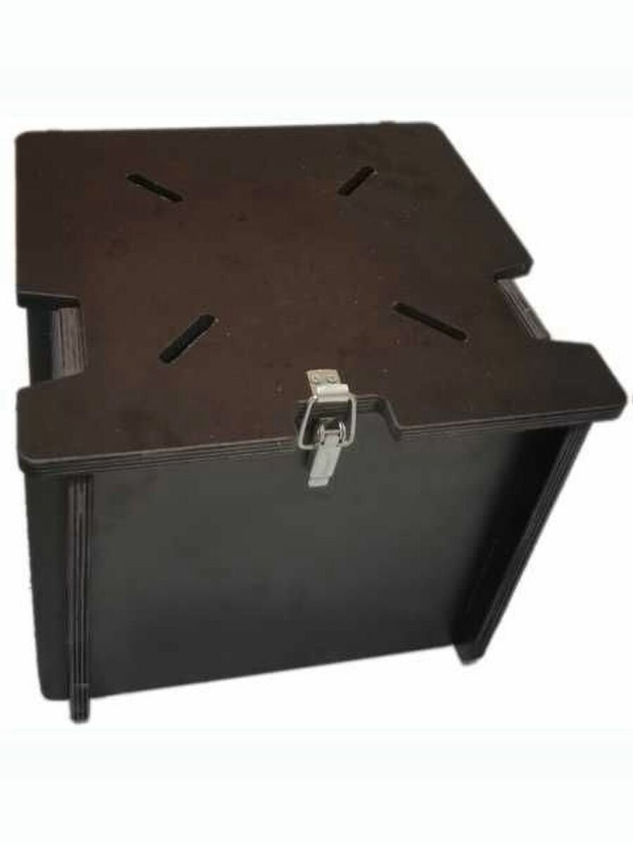 Выполнен из влагостойкой ламинированной фанеры 12 мм. Все стальные детали оцинкованы.