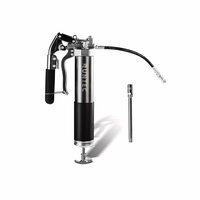 Универсальность Имеет возможность заполнения ручным способом или посредством картриджа со смазкой объемом 400 мл. Шприц комплектуется гибким шлангом для масла с четырехлепестковым наконечником. Переключение режима работы для одной и двух рук. Удобство Благодаря резиновым накладкам и эргономичной рукоятке шприц не выскользнет из рук при использовании. Короткий ход рукоятки и удобная Т-образная рукоятка для извлечения поршня облегчают работу. Надежность Наконечник шприца выполнена из литого цинка Z 410. Стальной корпус защищен от коррозии лакокрасочным покрытием. Система уплотнений (прокладка и вентиль с шариком) предотвращают возврат смазки из шприца.