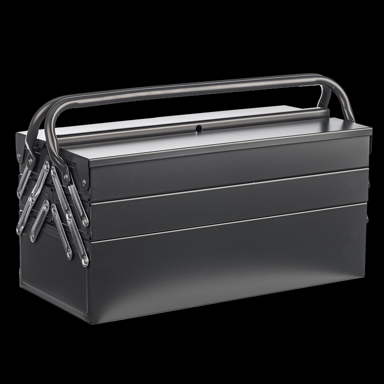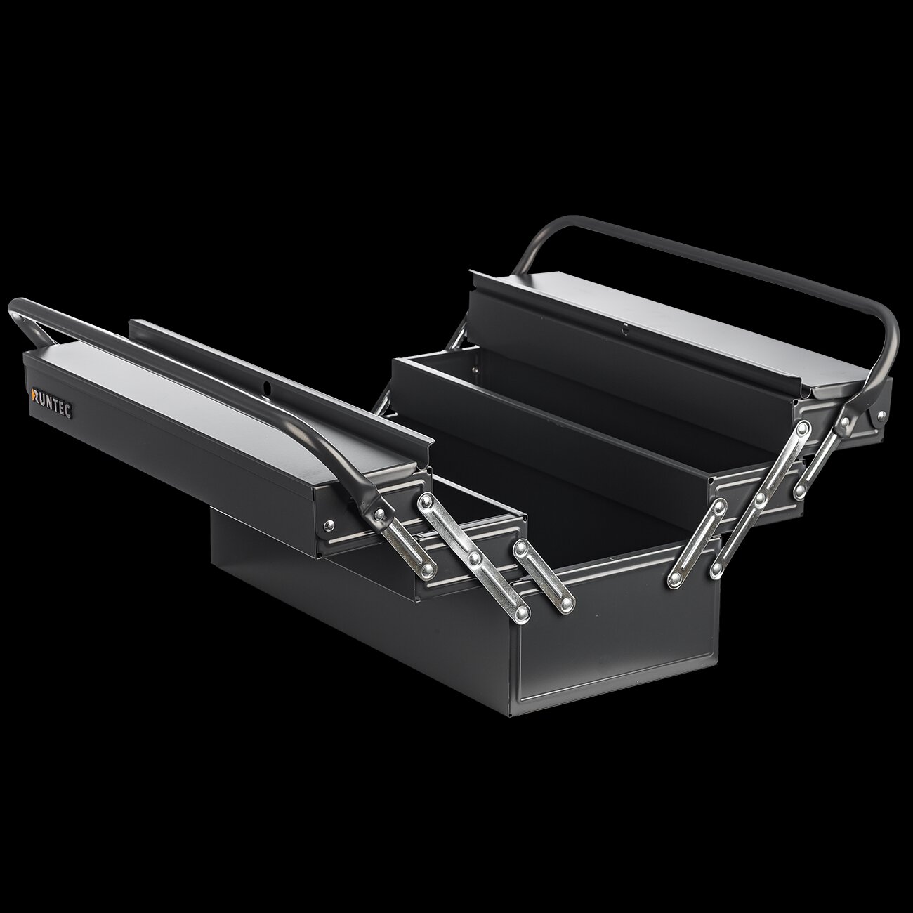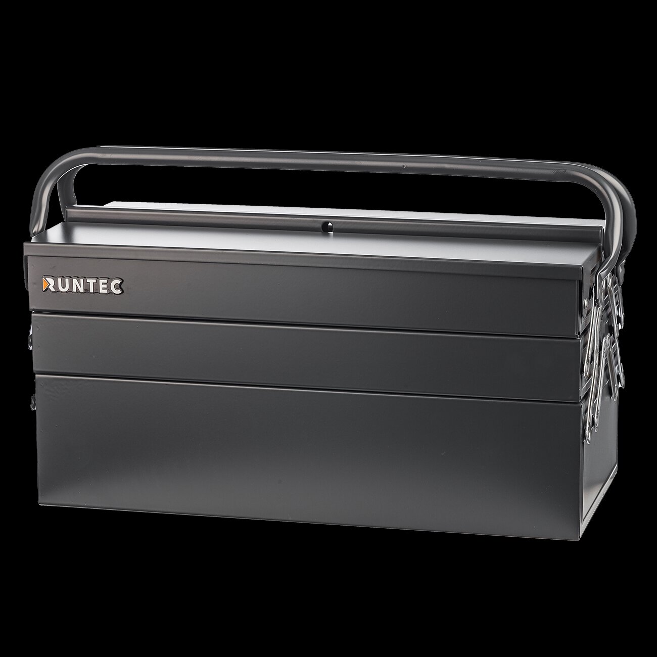 Оснастка и инструменты в идеальном порядке в ящике RUNTEC! Кейс сделан из металла высокой прочности, устойчивого к ржавчине и коррозии. Многоуровневые отделения раскладываются на две стороны для легкого доступа к содержимому. Для удобной транспортировки предусмотрена крепкая металлическая ручка.