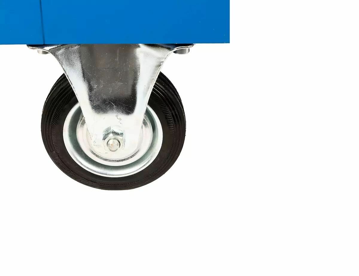 Инструментальную тележку можно перемещать даже по неровной поверхности. За фиксацию колес отвечает специальная система блокировки. Диаметр колес — 100 мм.