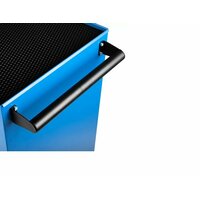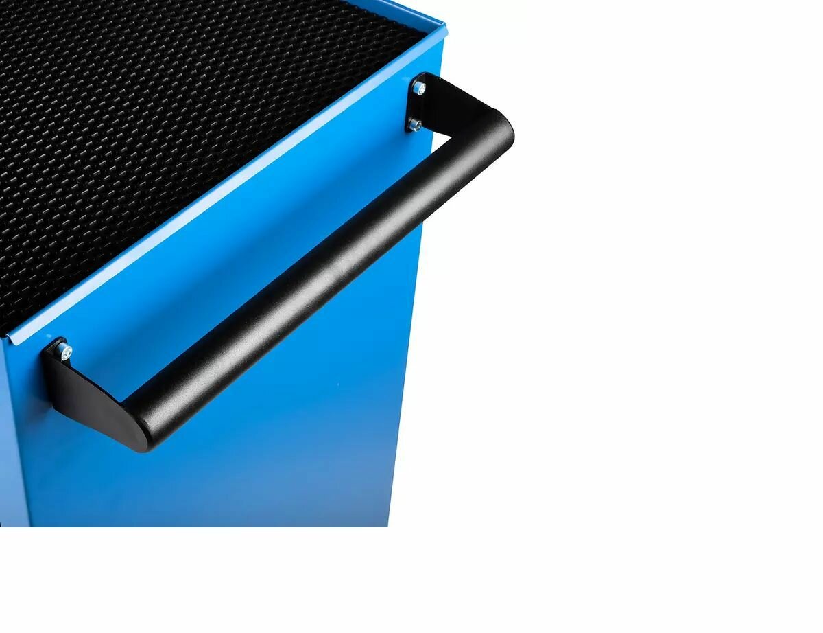 Толщина металла 1 мм. На ручки нанесен долговечный защитный шероховатый слой «soft-touch» — его наличие повышает удобство использования тележки, при этом открывать ящики сотрудники могут даже в испачканных перчатках.