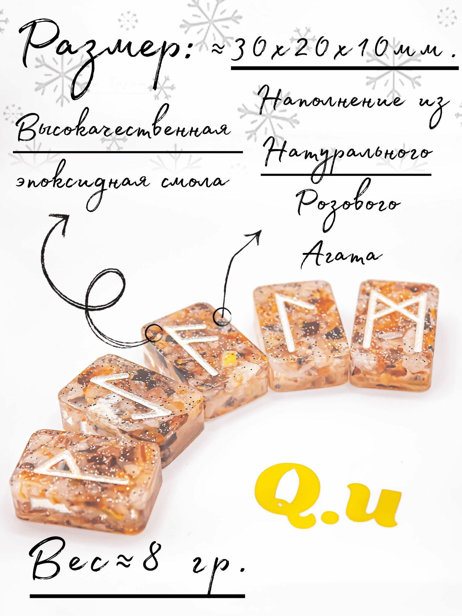 Каждая руна в нашем наборе изготовлена вручную с оригинальным дизайном, что делает ваши гадания уникальными и неповторимыми. Розовый агат, из которого сделаны руны, известен своими очищающими и целительными свойствами. Эти руны из натурального агата не только красивы, но и заряжены положительной энергией, что помогает улучшить вашу интуицию и ясновидение во время гадания.