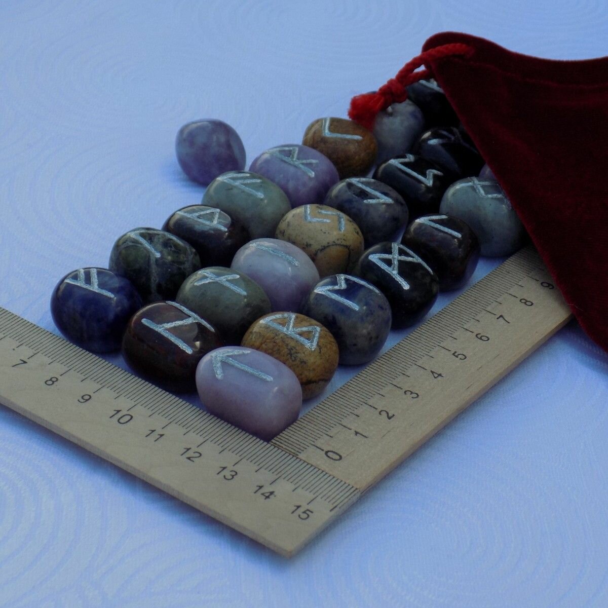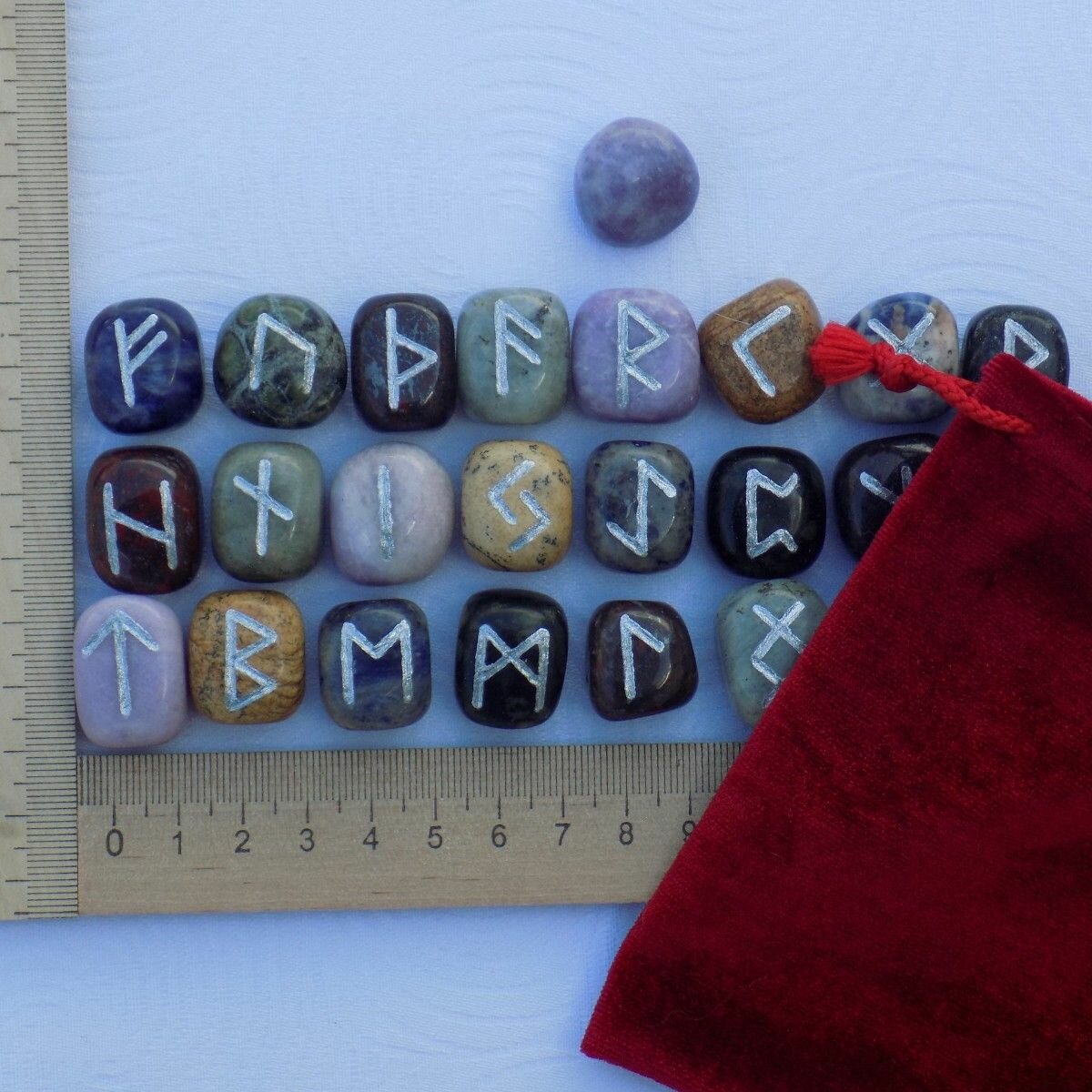 Скандинавские руны ручной работы (ручная гравировка, канавка) на натуральных камнях: