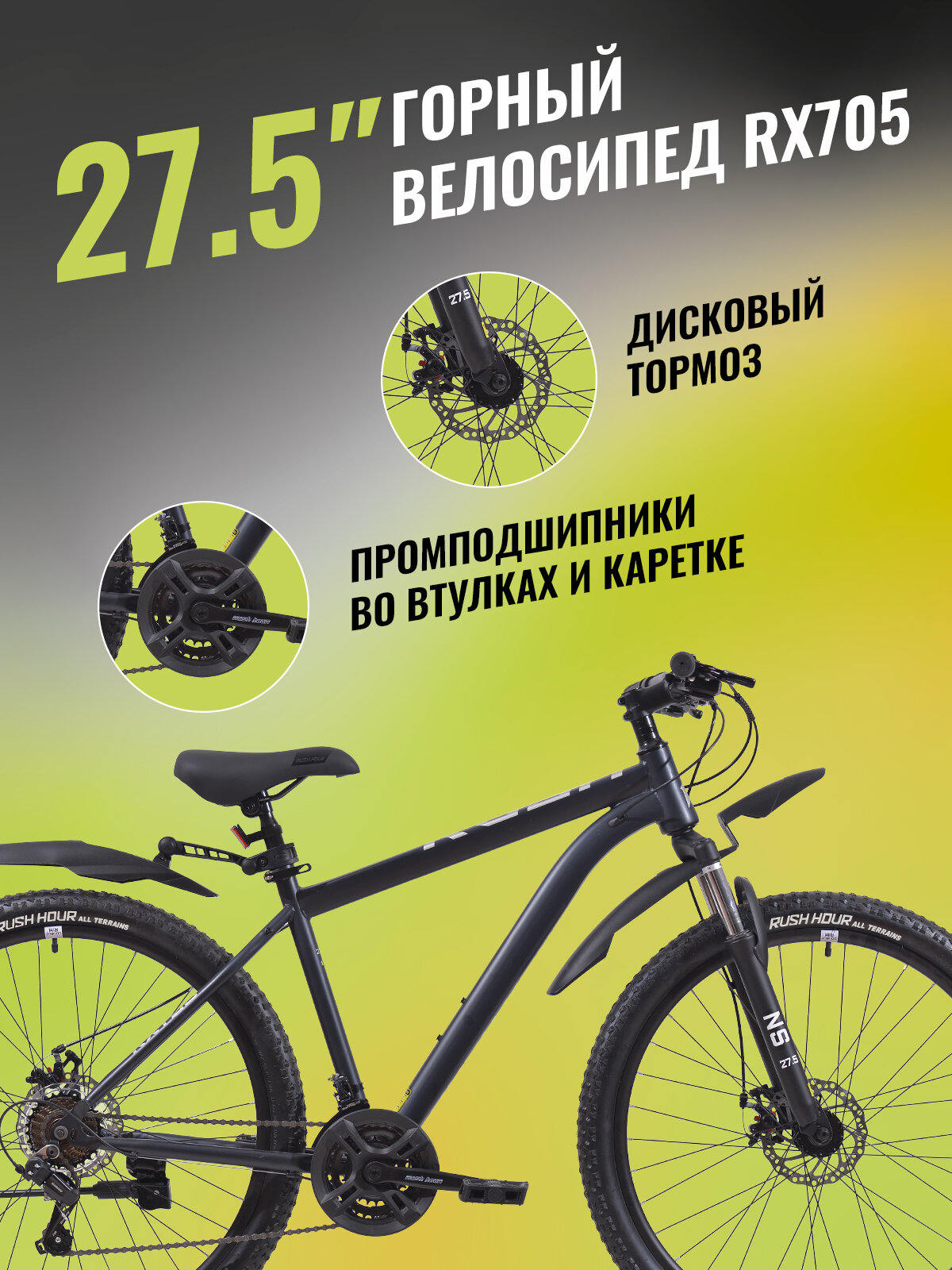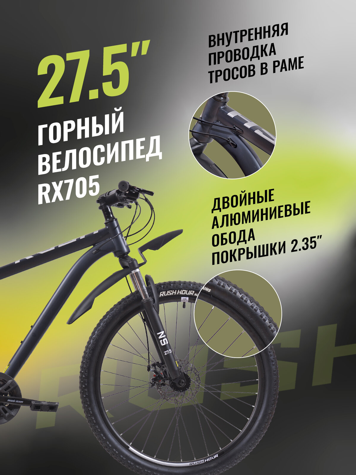 Велосипед взрослый горный дисковый 27,5″ RUSH HOUR RX 705 21 скорость черный рама 18″ рост 160-175 см. скоростной спортвный велик с амортизацией переключатель SHIMANO: сравнение цен, характеристики, фото, актуальное наличие и цены.