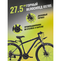 Купить Велосипед взрослый горный дисковый 27,5″ RUSH HOUR RX 705 21 скорость черный рама 18″ рост 160-175 см. скоростной спортвный велик с амортизацией переключатель SHIMANO с доставкой по всей России.