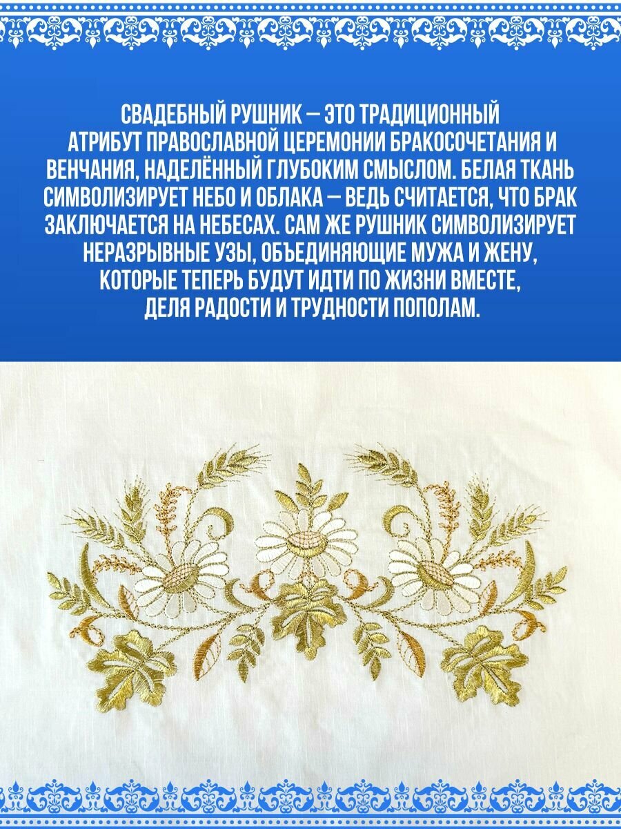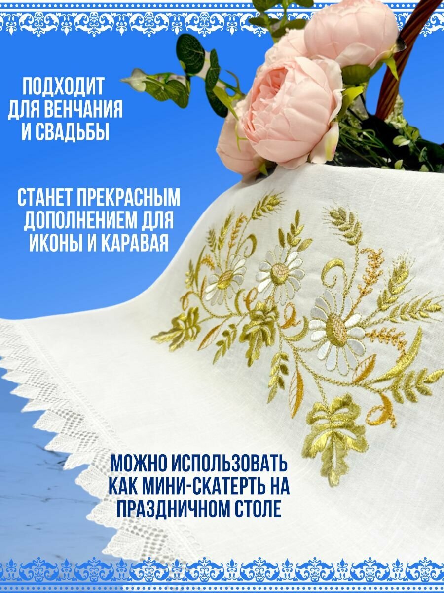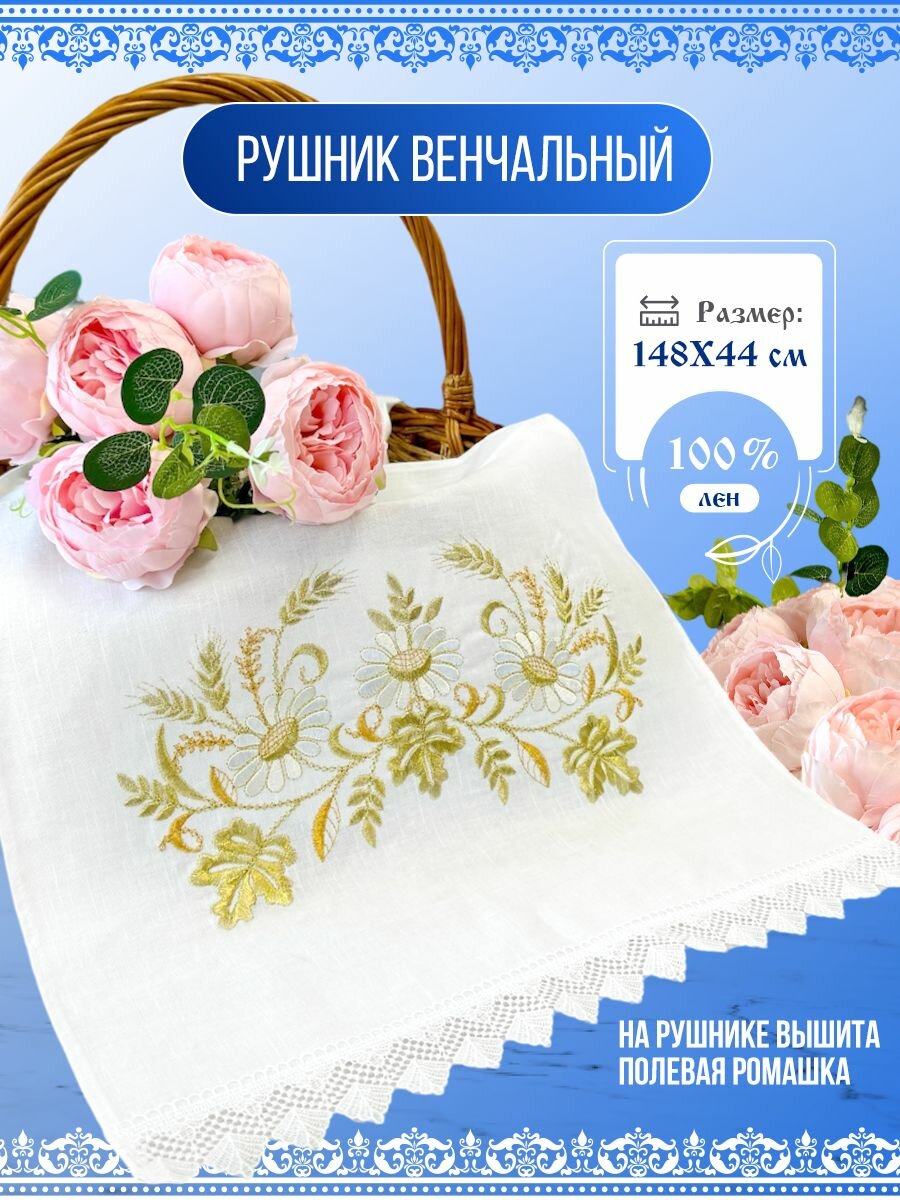 Рушник свадебный - это символ любви, символизирующий чистоту и благополучие в семейной жизни. Наши венчальные рушники изготовлены из высококачественного материала – лен с вышивкой, что делает их неповторимыми и прекрасными для особого события. Свадебный рушник под иконы и под каравай может использоваться как для церемонии венчания, а так же как украшение для стола на свадьбу. Полотенце для венчания и под каравай - неотразимые свадебные украшения, которые станут отличным дополнением к подарку на свадьбу молодоженам. Рушники свадебные для иконы доступны в белом цвете. Ручник размером 148х44 см. Рушник под иконы так же подойдет под ноги во время церемония венчания . Пусть этот день запомнится не только радостью и счастьем, но и прекрасными деталями, которые создадут уникальную атмосферу вашего торжества. Уверены, что наши белые рушники для венчания станут идеальным выбором для вас и ваших близких!