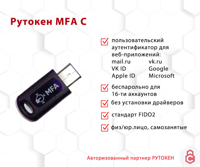 Рутокен MFA C - универсальное компактное устройство для подключения к любым устройствам - компьютерам, ноутбукам, планшетам и мобильным телефонам.
