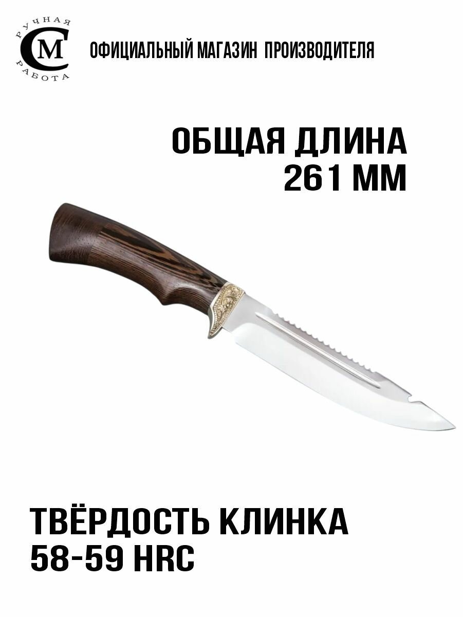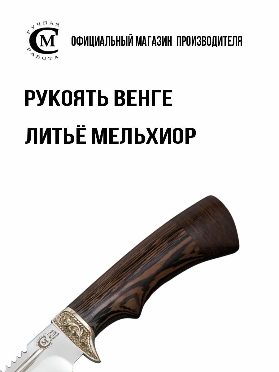 Нож из стали 95Х18 Мангуст, рукоять венге, литьё мельхиор, ножны кожа