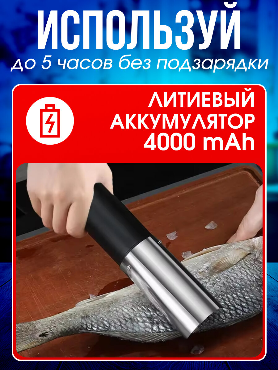 Рыбочистка электрическая TAYMLUX FC-125, аккумуляторная, чистилка для рыбы, для чистки чешуи, электро прибор 6 лезвий