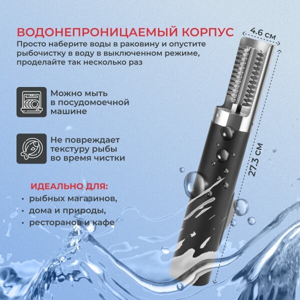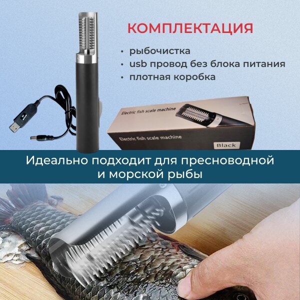 Рыболовный инструмент для рыбалки заменит прежние приспособления для чистки рыбы: нож, скребок, терка для чистки рыбы, щетка, доска разделочная, ручная чистилка. Очиститель рыбной чешуи справляется с любой рыбой: лещ, подлещ, подлещик, язь, толстолобик, осетр, стерлядь судак, окунь, щука, карась, сазан, карп и другими. Электрорыбочистка - это отличный подарок для рыбака. Рыболовный гаджет можно взять с собой на рыбалку - он не займет много места и поможет перечистить Ваш улов на природе, дома, на даче, в походе. Герметичный влагонепроницаемый корпус можно мыть под водой или под струей воды. Рекомендации по применению: Возьмите рыбу за голову и прижмите к ровной поверхности. Включите рыбочистку. Двигайтесь вдоль тушки от головы к хвосту. Старайтесь чистить максимально свежую рыбу. Не прилагайте большого усилия для нажима. Всегда замечательный и нужный подарок без повода и на любой праздник: конечно, рыбаку, рыболову или повару, кулинару, на День рождения, любимому человеку, на работе начальнику или коллеге, мужу или жене, маме или папе, брату или сестре, подруге или другу, дочери или сыну, бабушке или дедушке, просто знакомому. Хотите порадовать близкого Вам человека, который любит готовить рыбу, полезным подарком? Готовка и нахождение на кухне с этим интересным подарочным набором превратится из трудности в удовольствие!