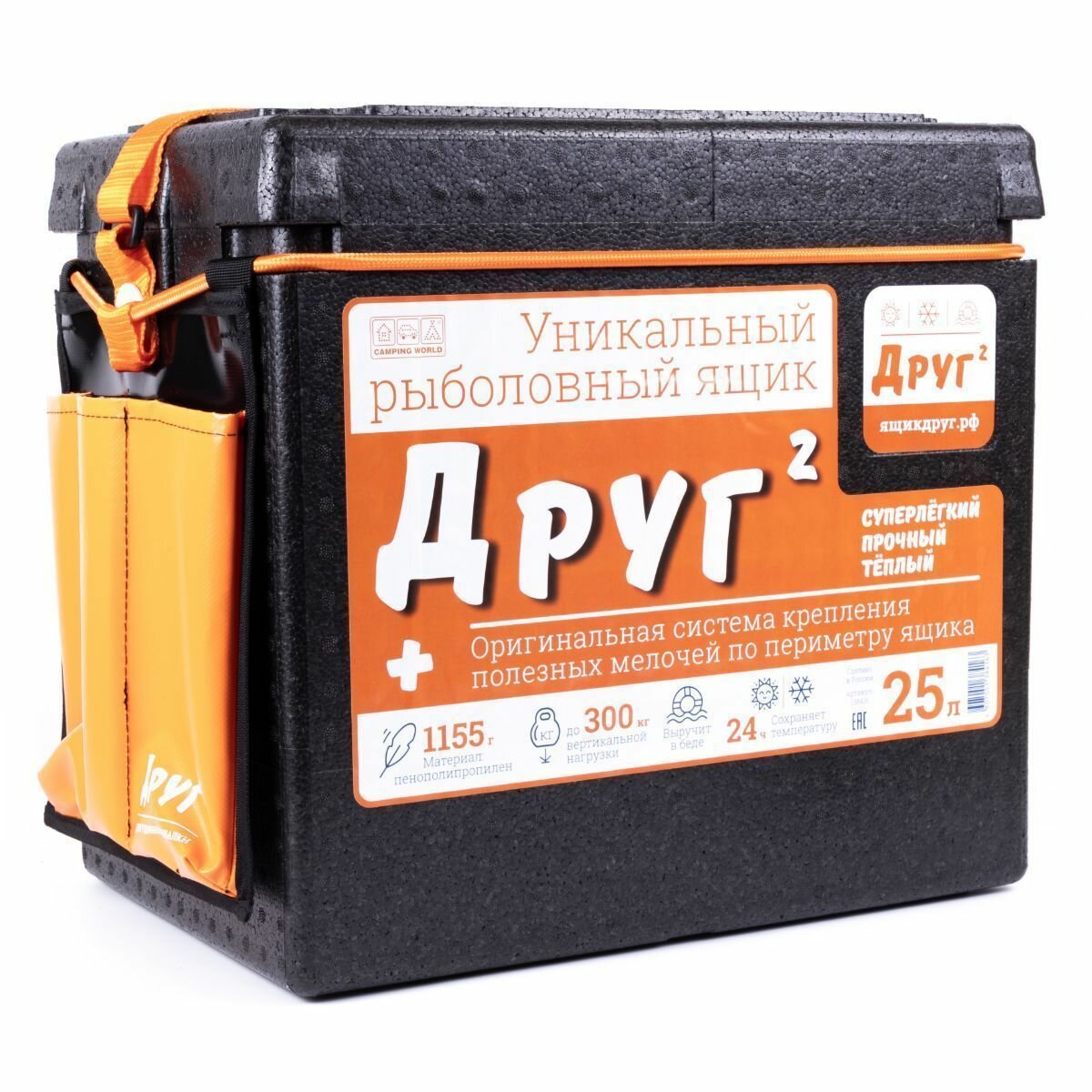 Рыболовный ящик Camping World «Друг-2+» 25 л цвет чёрный + оригинальная система крепления ( в комплекте резинка и карман для полезных мелочей): сравнение цен, характеристики, фото, актуальное наличие и цены.