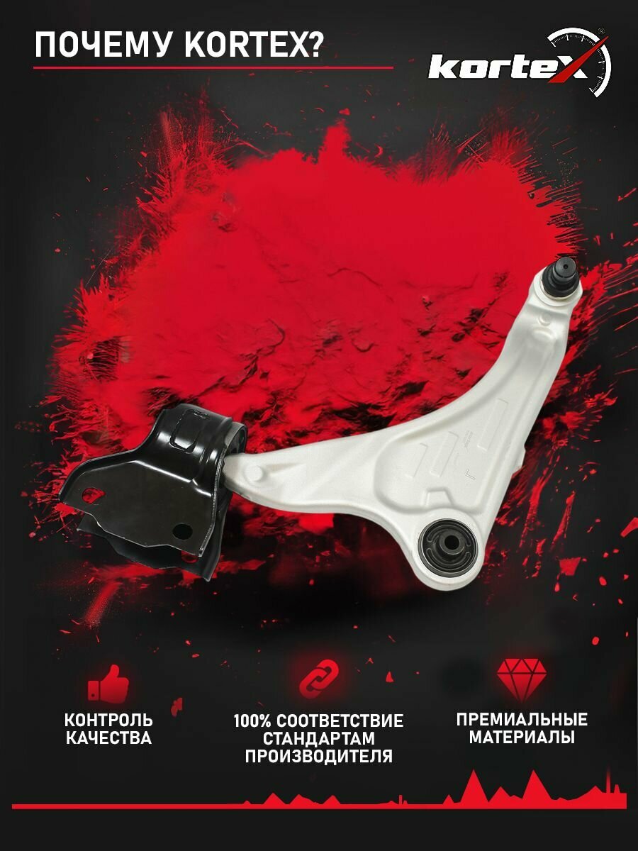 Рычаг передней Подвески KORTEX производится на современных автоматизированных линиях производства с применением последних технологий, что гарантирует минимальное значение допусков, полное соответствие необходимым размерам и беспроблемную установку.