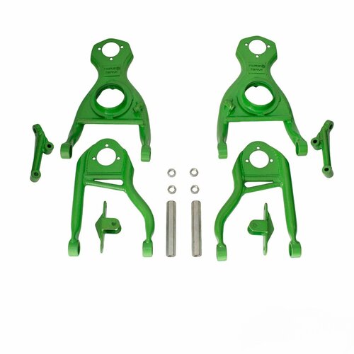 Модель автомобиля: ВАЗ 2101-07 Производитель: рычаги производства ООО турботема Материал: рычаги турботема изготовлены из бесшовной трубы Ф 30 мм и толщиной стенки 3.5 мм. порошковая окраска, цвет-зеленый, резиновые сайлентблоки. Комплектация: 2 нижних,2 верхних рычага,2 крепления амортизаторов, резиновые сайлентблоки, 2 скрутки для регулировки схождения, укороченые сошки. Назначение: Рычаги для увеличения предельного выворота колес, уменьшен угол Аккермана. В конструкции рычагов заложен увеличенный кастер и развал, для увеличения избыточной поворачиваемости и стабильности при управлении автомобилем в заносе. Колея относительно стандартных рычагов увеличена на +50мм верхний рычаг и на +70мм нижний рычаг. Максимальный угол поворота колес 55 градусов. Дополнительная информация: Минимальное занижение автомобиля -50мм. Рычаги разработаны с учетом установленной тормозной системы от ваз 2112, стандартную тормозную систему использовать нельзя. Шаровые использовать все 4 штуки верхние. Минимальный развал колес -4 градуса. Рекомендуемый параметр кастера 9-12 градусов. Шпильки крепления аммортизатора м10. Требуют доработок кромок арки, либо раскатка либо подрезание арки.