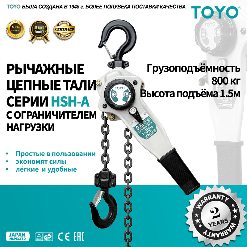 Купить Рычажная цепная таль TOYO HSH-A-OL 0,8T 1F L1.5M с ограничителем грузоподъёмности с доставкой по всей России.