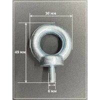 Длина рым-болта составляет 41 мм, диаметр – 6 мм, а грузоподъемность – 0,075 тонны. В комплекте поставки вы найдете 10 штук.