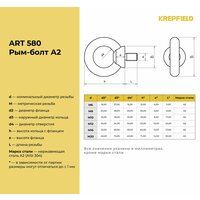 Рым-болт АРТ 580 из нержавеющей стали А2* предназначен для закрепления элементов такелажа или подъёмных устройств на грузе или опоре путём ввинчивания болта в груз деталей или путём накручивания гайки на винт с обратной стороны детали.