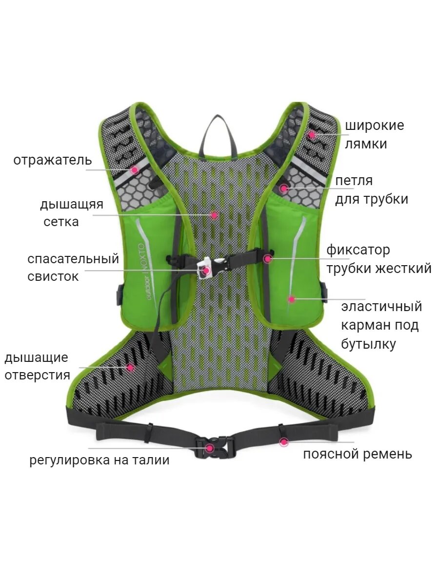 Без гидратора! Самый удобный спортивный рюкзак, вместимостью 16 литров. В этой модели собрано все, что требуется для долгой физической работы. Он подойдет, если Вы отправляетесь на длинный велопробег или ультрамарафонский бег, на горнолыжный курорт. Возьмите с собой все, что необходимо для комфортного преодоления дистанции. Весь функционал представлен на фото, подробнее опишем основные свойства. Рюкзак предназначен для использования его с питьевой системой - гидратором. Для этого предусмотрено все необходимое - отдел для пакета воды, карман для вывода трубки, жесткие и мягкие фиксаторы шланга. Пейте воду не останавливаясь и не теряя времени! Так же, в передней части рюкзаказа на плечевых лямках есть эластичные карманы под бутылочки или мягкие фляги. В защелку на груди встроен спасательный свисток на случай непредвиденной ситуации. По бокам основного отделения можно крепить треккинговые палки, это очень удобно на спусках, помогает освободить руки. В нижней части в потайном кармане есть сетка для крепления шлема или других объемных вещей. Просто вытащите полотно сетки и закрепите карабинчиками с пластиковыми петлями в верхней части рюкзака. Эластичные карманы на задней части и карманы на молнии в области талии нужны для хранения мелочей: ключей, телефона, карточек, спортивного питания, медикаментов. Спинка рюкзака, плечевые ремни и ремни на талии выполнены из дышащего материала EVA с множественными отверстиями для выведения влаги. Ткань, из которой изготовлен велорюкзак имеет водоотталкивающую пропитку, Ваши вещи будут под надежной зашитой в дождь. Передняя пряжка в области груди имеет несколько положений, что позволяет закрепить её по индивидуальному желанию. Рюкзак хорошо зарекомендовал себя на забегах по трейлраннингу, скайраннингу и горным туристическим походам, для сноуборда и горных лыж. В него помещается вся обязательная экипировка и остается место для личных вещей. Гидратор под данную модель рюкзака можно приобрести в нашем магазине Topi.