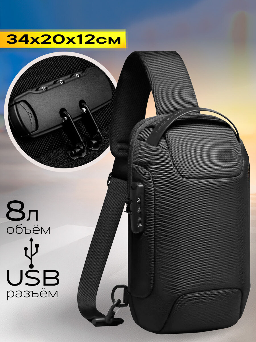 Рюкзак-антивор мужской городской однолямочный через плечо Mark Ryden маленький 8л, для планшета 9.7″, водонепроницаемый, с кодовым замком, цвет черный: сравнение цен, характеристики, фото, актуальное наличие и цены.