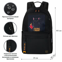 Купить Рюкзак Brauberg 272569 FASHION CITY универсальный, карман-антивор, Cat, черный, 44х31х16 см с доставкой по всей России.