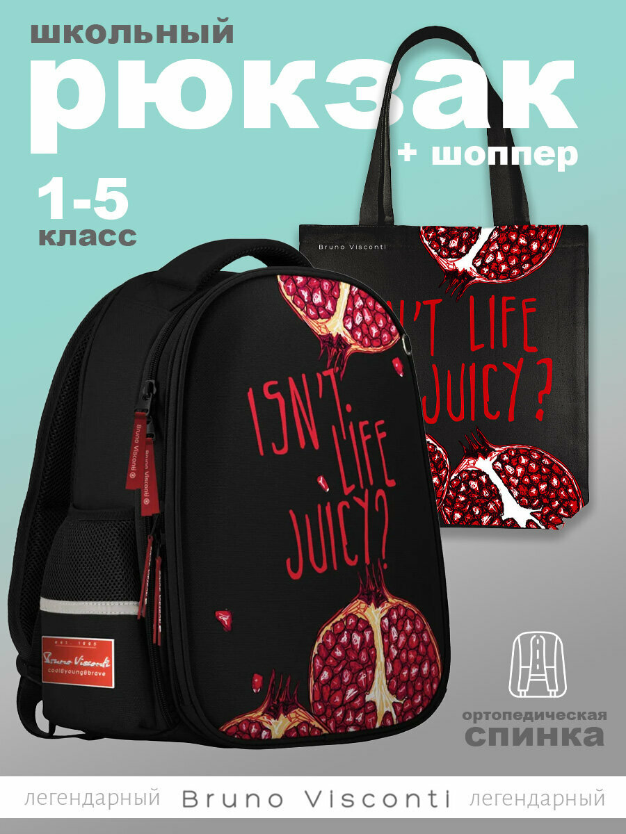 Купить Рюкзак Bruno Visconti черный с эргономичной спинкой «FRESH & FRUITY. Гранат» с сумкой-шоппер, Арт. 12-009-086/01-КШ с доставкой по всей России.