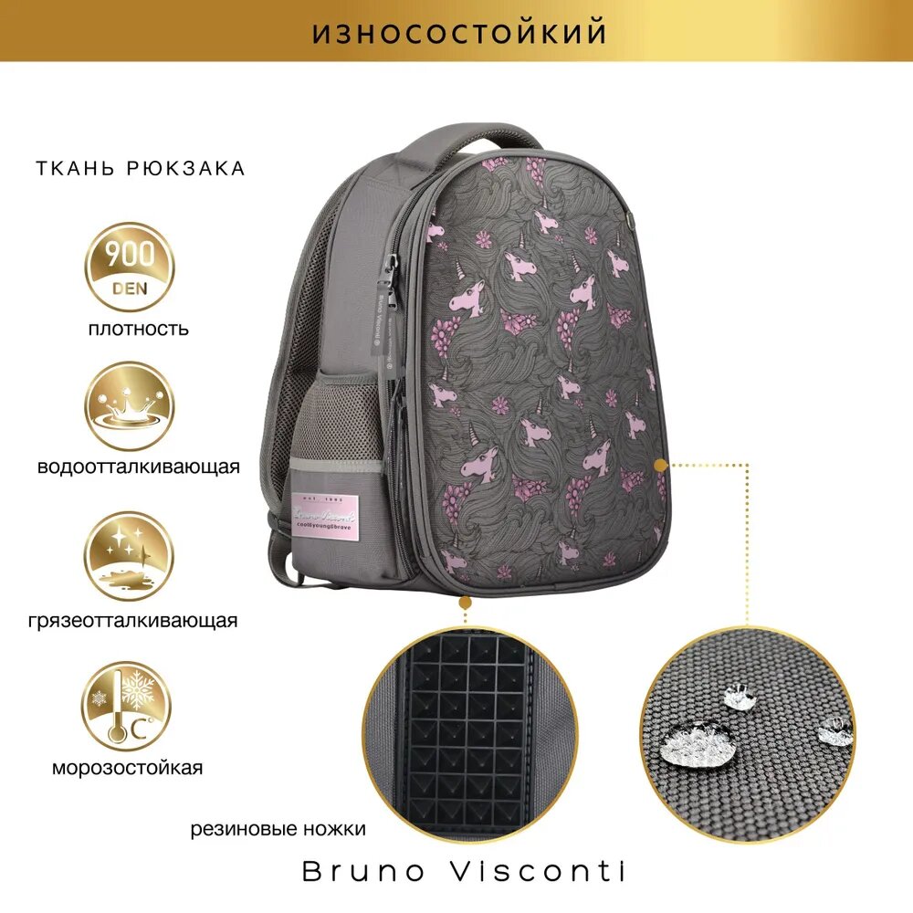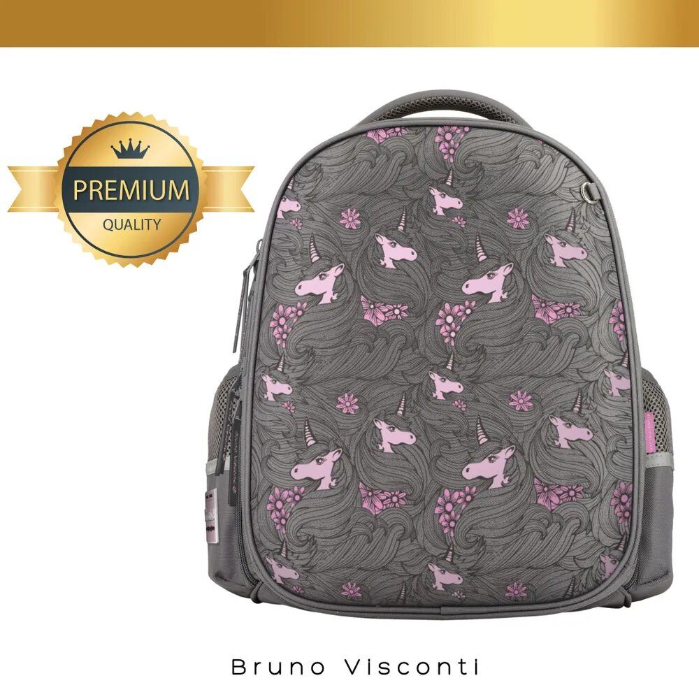 Рюкзак Bruno Visconti облегченная капсула серый с эргономичной спинкой "единороги. Романтика" Арт. 12-001-061/05