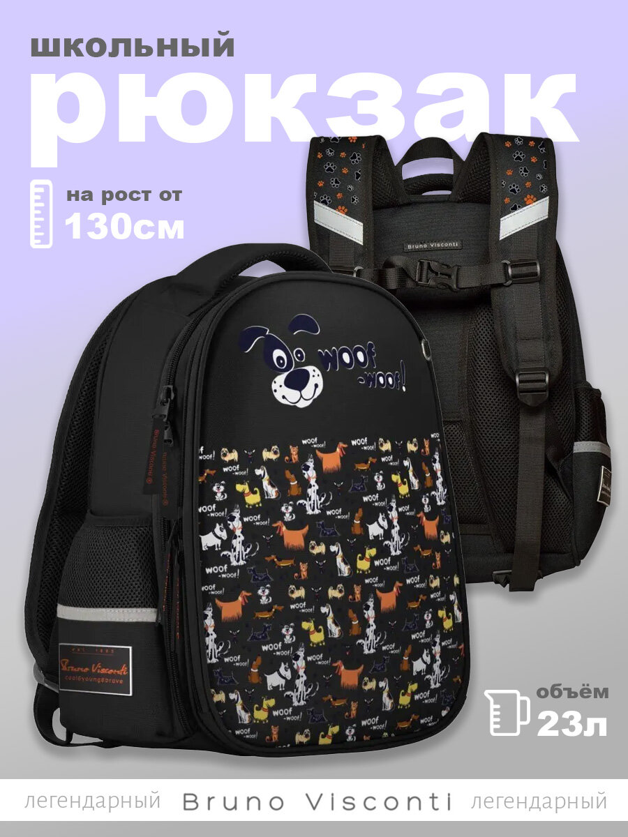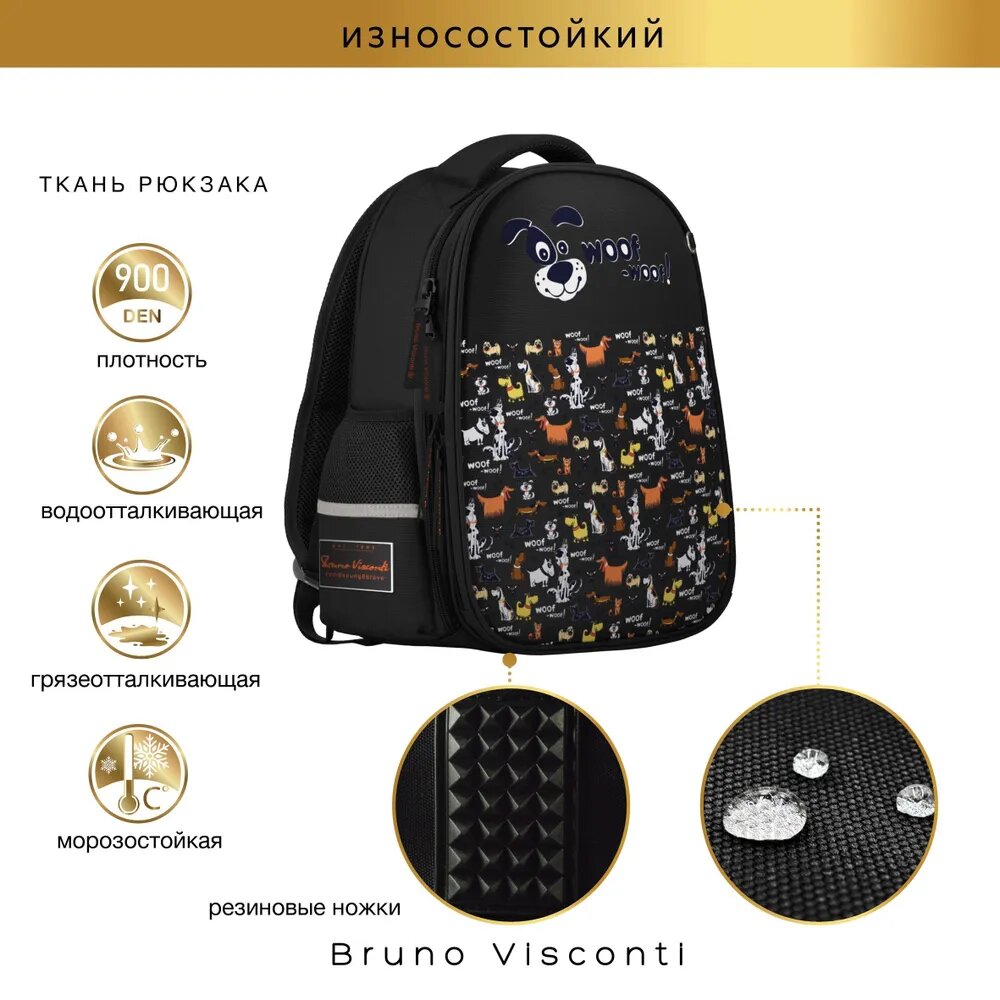 Купить Рюкзак Bruno Visconti черный с эргономичной спинкой «собачки. WOOF» Арт. 12-001-048/01 с доставкой по всей России.