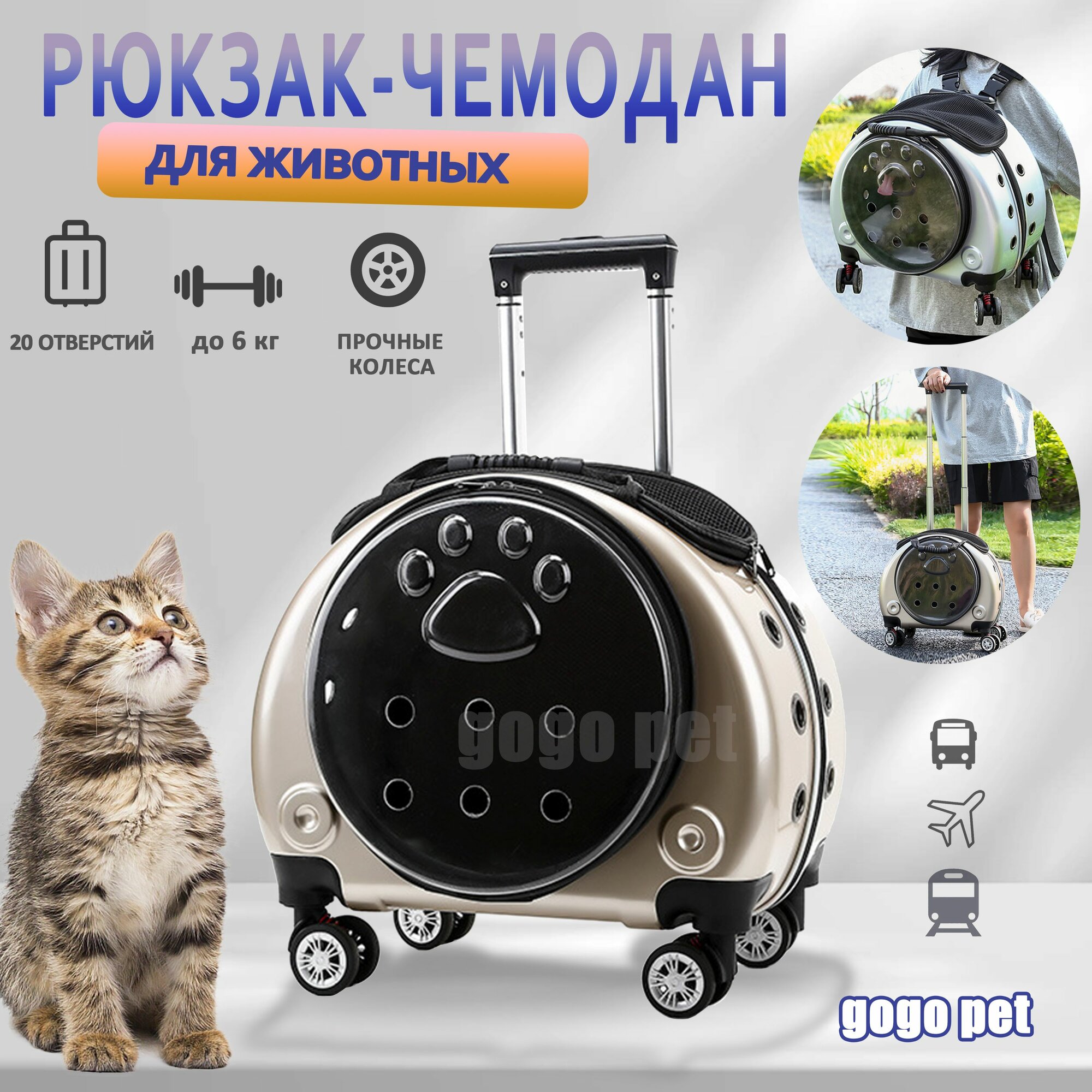 Купить Рюкзак-чемодан / Переноска и перевозка на колесиках для кошек и собак, для мелких и средних пород (до 6 кг), золотой с доставкой по всей России. Рюкзак-чемодан / Переноска и перевозка на колесиках для кошек и собак, для мелких и средних пород (до 6 кг), золотой: сравнение цен, характеристики, фото, актуальное наличие и цены.