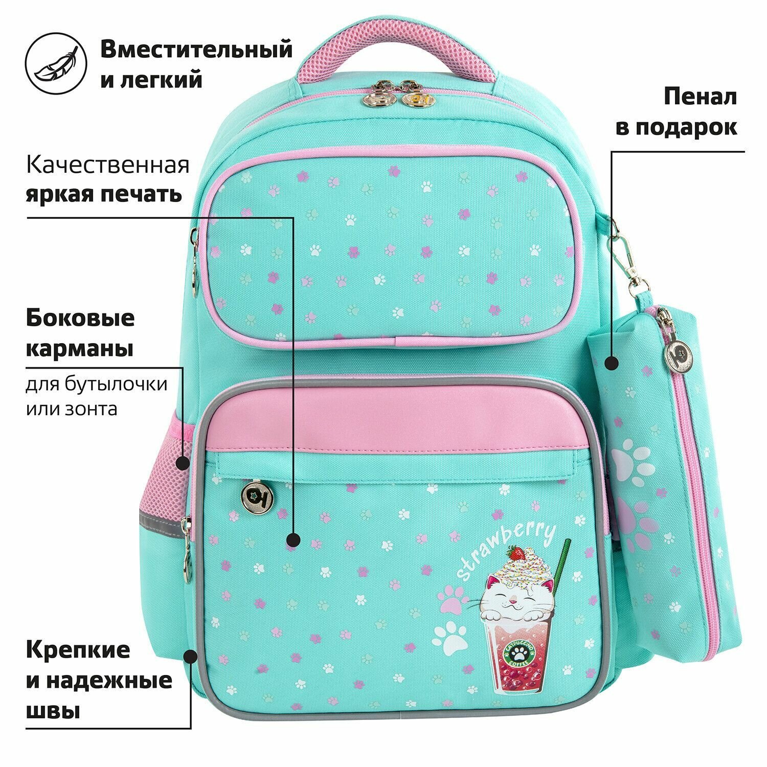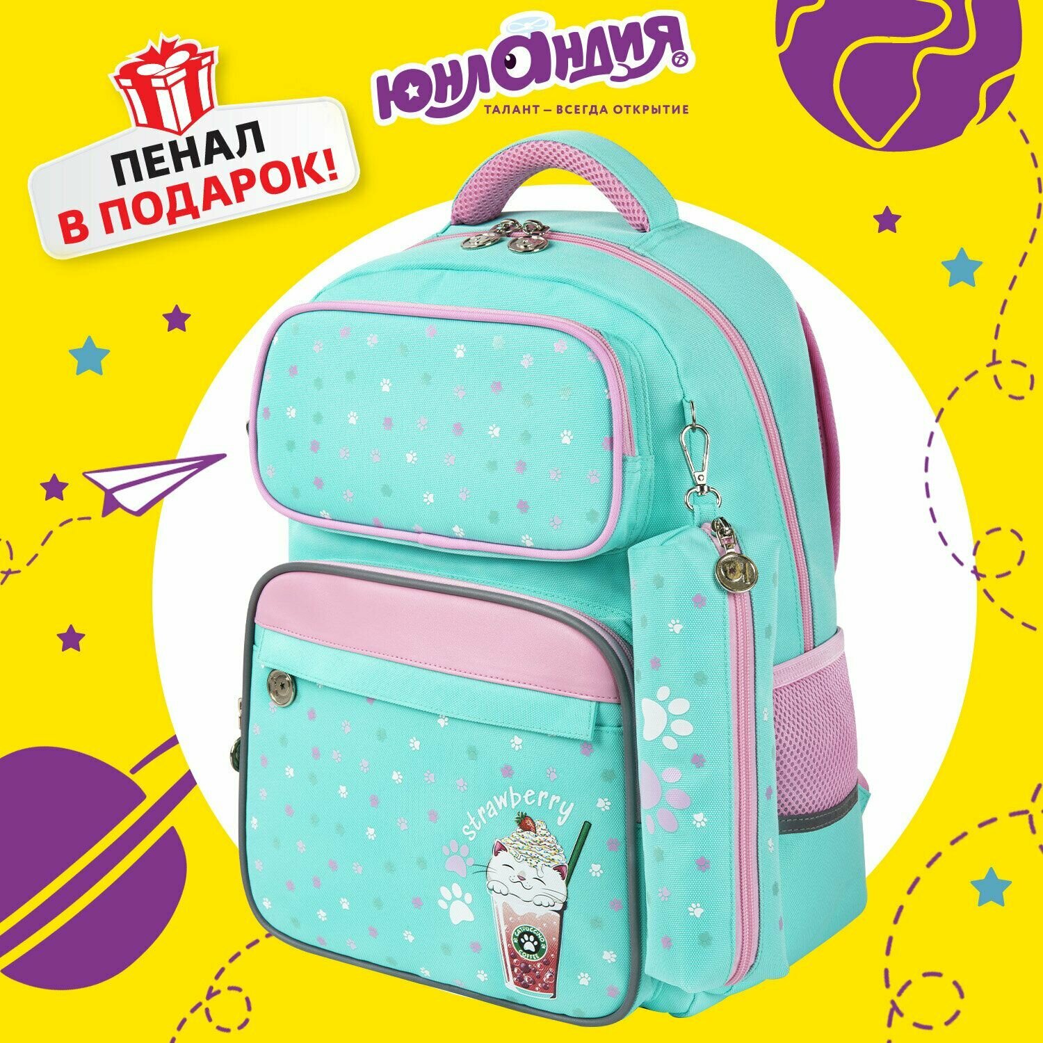 Рюкзак COMPLETE, с пеналом в комплекте, эрго-спинка, «Yummy cat», 42х29х14 см, 270663: сравнение цен, характеристики, фото, актуальное наличие и цены.