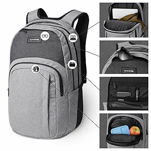 Рюкзак Dakine Campus M 25L - средняя по размерам модель популярной линейки Campus. Испытанный и проверенный временем универсальный рюкзак для города и школы. Продуманный дизайн с несколькими отделениями, включая большое основное отделение с мягкой подкладкой для ноутбука и место для книг и папок с файлами. Изолированный термокарман надолго сохраняет еду и напитки в необходимой температуре, а сочетание карманов-органайзеров позволяет легко разметстиь все необходимые предметы.