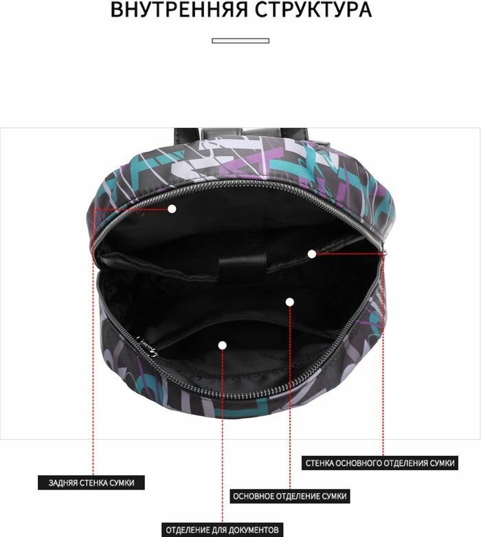 анатомические лямки, вмещает А4, внешний карман, внутренний карман, карманы, отделение для ноутбука, широкие лямки