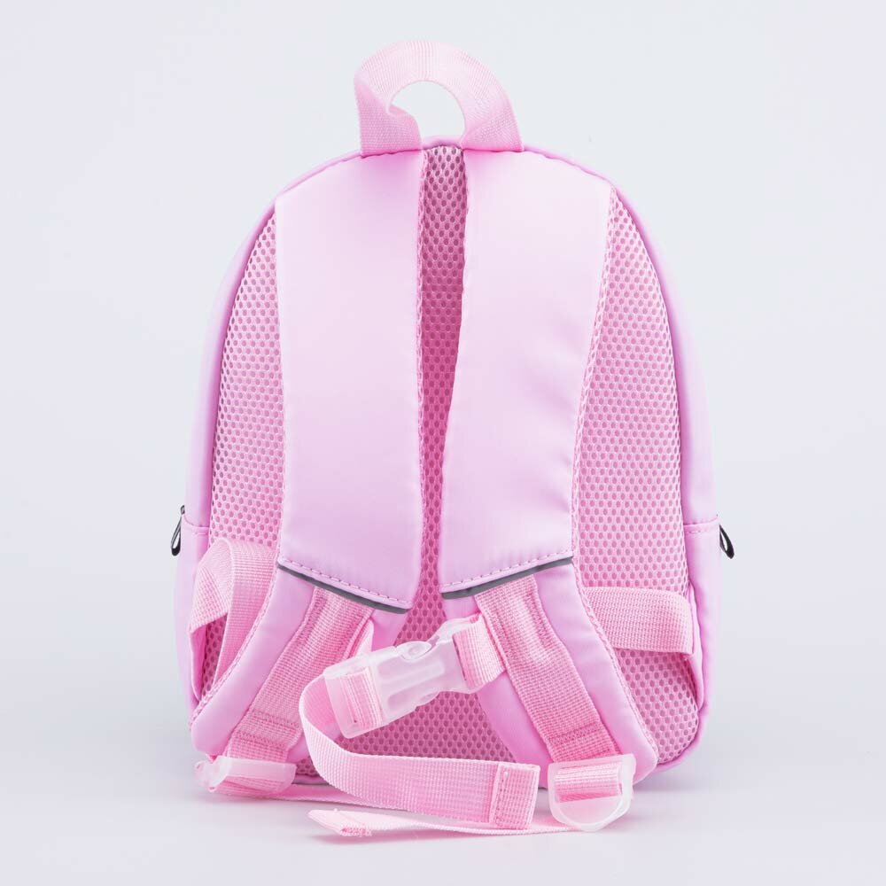 - Небольшие размеры рюкзака и его малый вес идеально подходят для детей в возрасте от 2-х до 7 лет. - Рюкзак оснащен формоустойчивой спинкой из мембранного материала с эффектом вентиляции. - Имеются специальные ремни с застежкой спереди. - Лямки регулируются по длине, обеспечивая оптимальное прилегание к спине и равномерное распределение нагрузки, оснащены мягкими вставками для дополнительного комфорта и защиты плеч от перегрузок. - Одно основное отделение на молнии. - Рюкзак имеет светоотражающие элементы по всему периметру изделия. - Внутри прозрачного окошка имеется наполнение в виде мягких цветков.