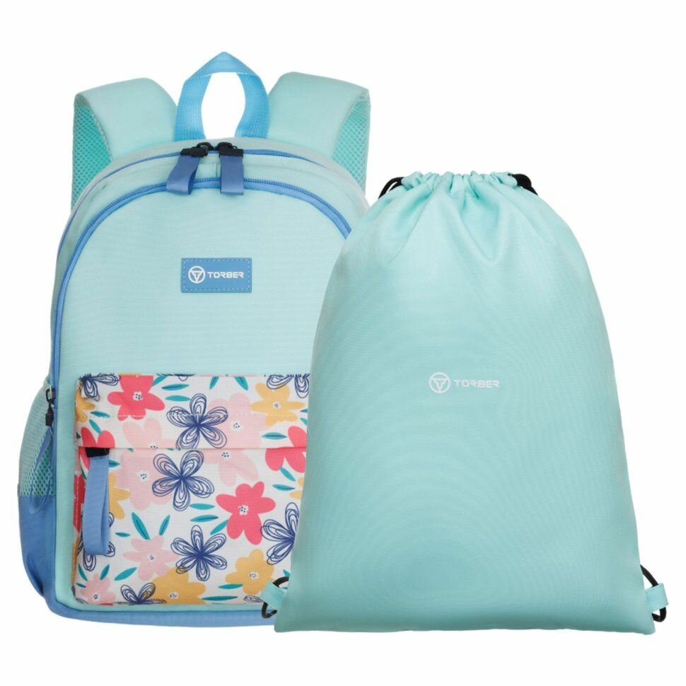 Купить Рюкзак детский Torber CLASS X Mini T1801-23-Grn бирюзовый с принтом с доставкой по всей России.